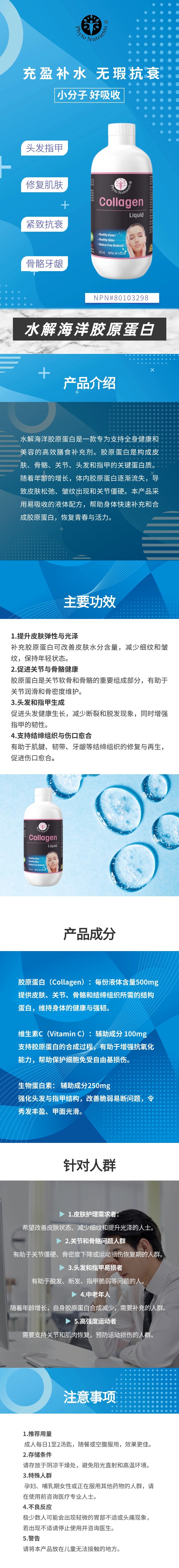 Phyto Nutrients液体胶原蛋白有助于骨骼、软骨、牙齿、牙龈、头发、指甲、黏膜、皮肤的发育与保养,还能促进伤口愈合、结缔组织形成,增强免疫功能,提升身体对营养物质的代谢能力。本产品也是一种抗氧化剂,有助于维持身体健康,能够抵御自由基对细胞造成的氧化影响,减少氧化损伤,保护细胞。 Phyto Nutrients液体胶原蛋白已获得加拿大卫生部认证,NPI 80103298。 药用成分 含量(毫克/5毫升) 水解胶原蛋白(海洋来源)500毫克 维生素C 100毫克 生物素 250微克